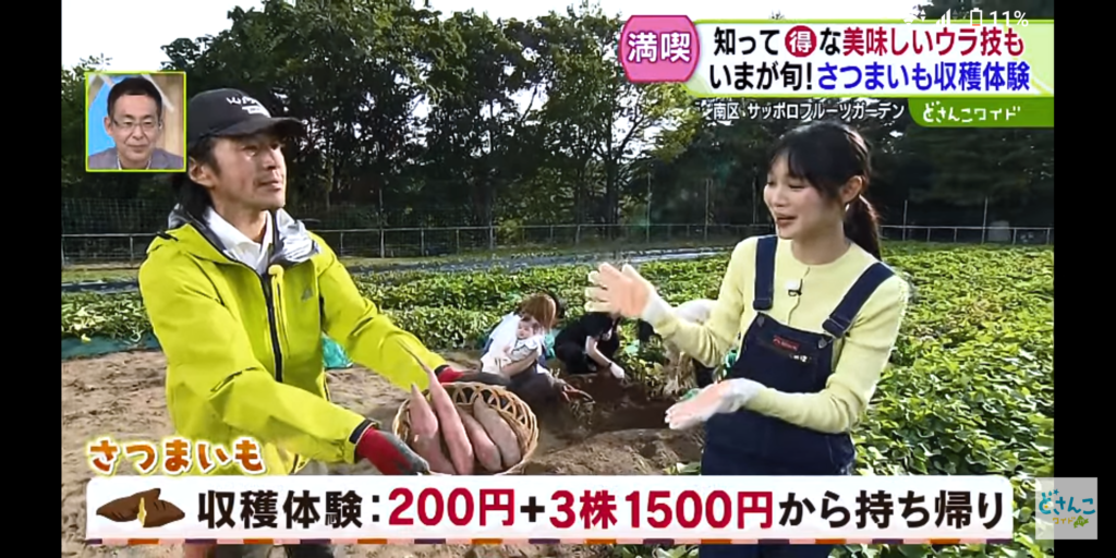 夕方のお天気がちょっと心配な感じでしたが、中継の頃には綺麗に晴れてくれたので、プルーン & リンゴ & サツマイモのフルコースで情報をお届けして頂きました!